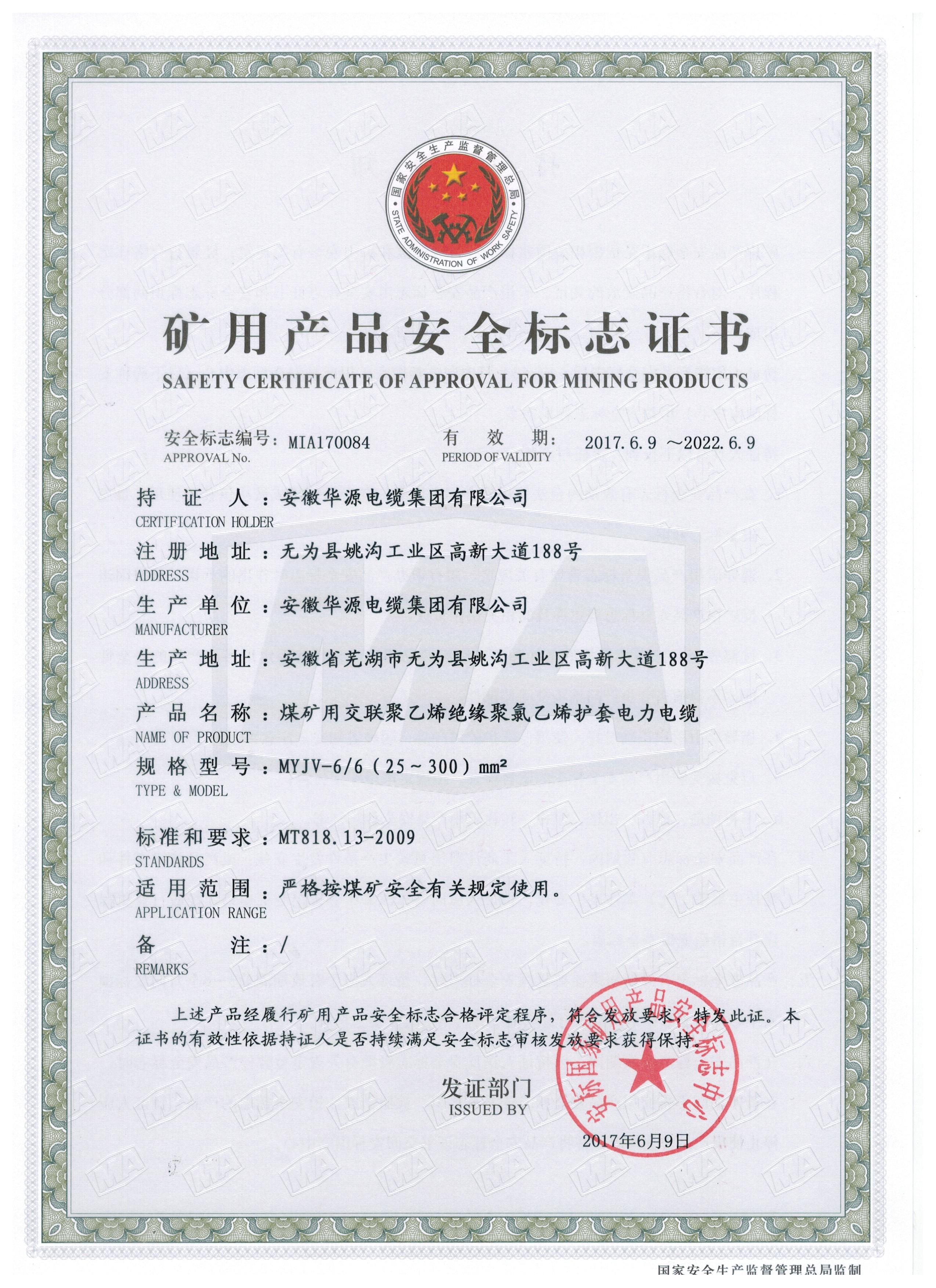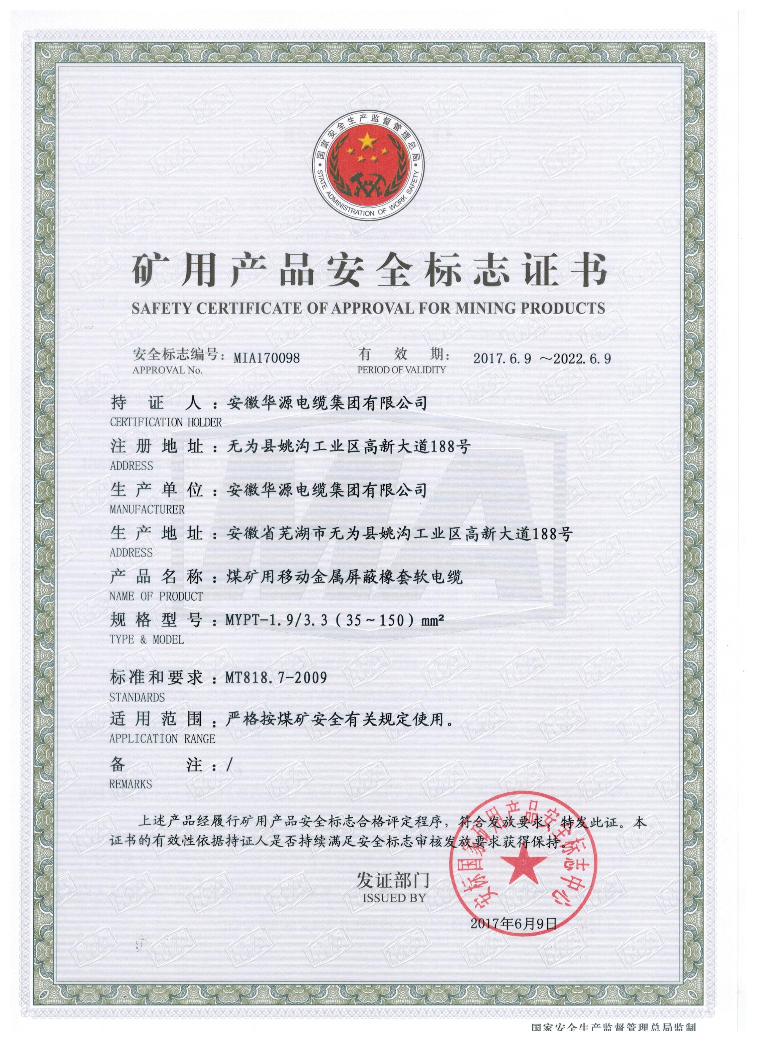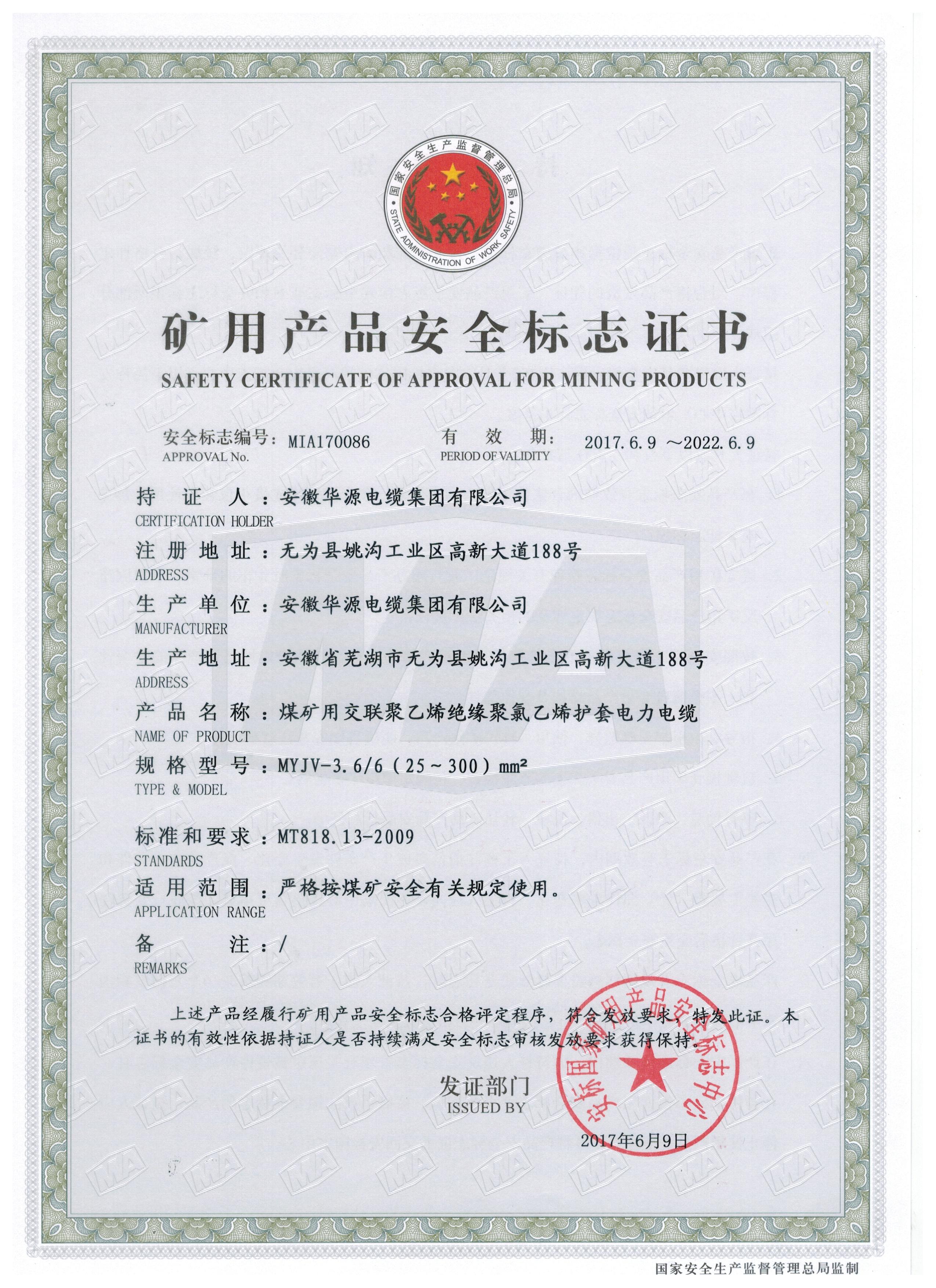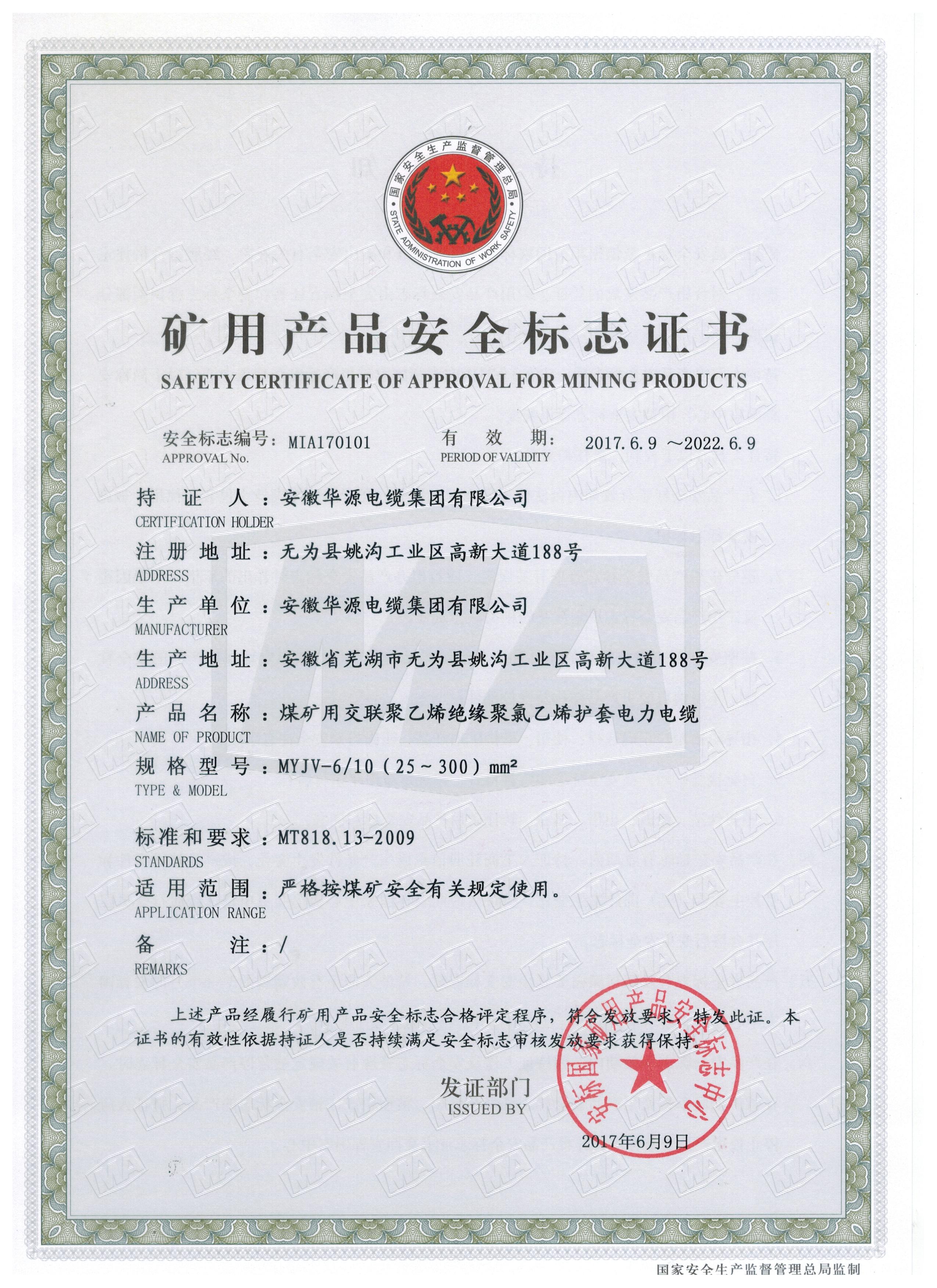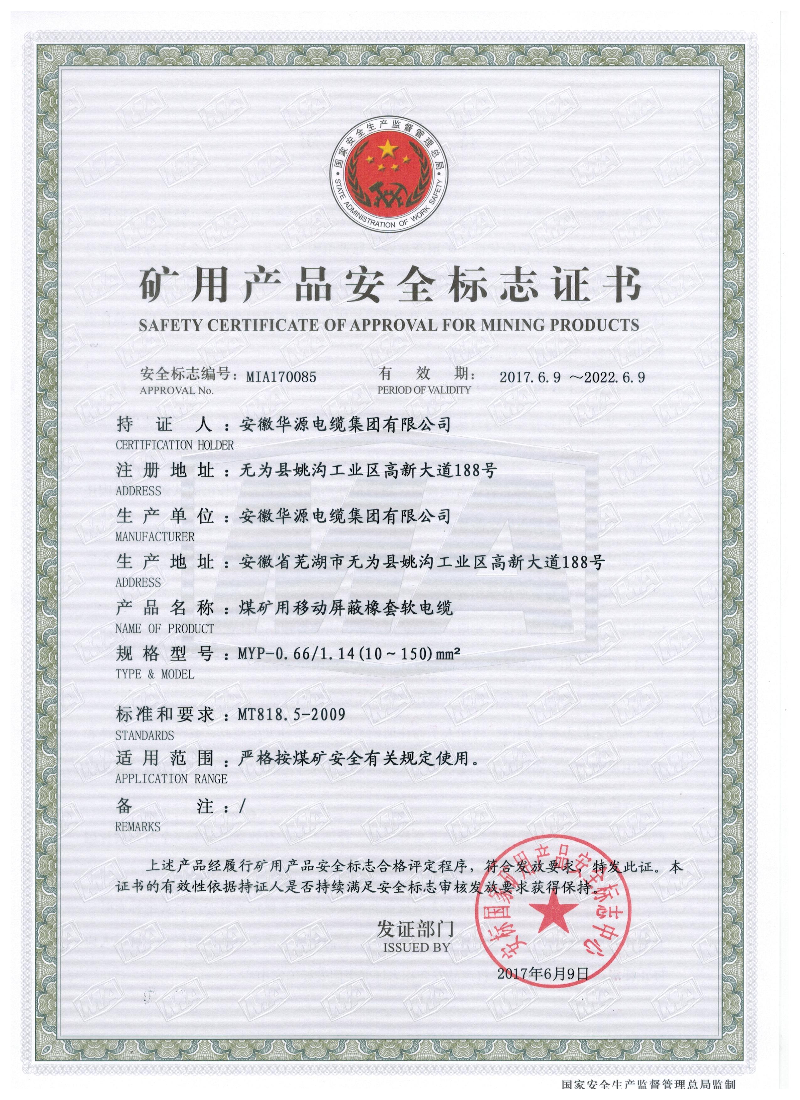 礦用產(chǎn)品安全標(biāo)志證書2017